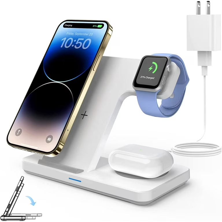 La estación de carga inalámbrica 3 en 1 combina las mejores características de todos los demás cargadores inalámbricos. Ya sea en modo de carga de base magnética o en modo de carga plana, puede cargar simultáneamente tu iPhone, iWatch y AirPods. Es un dispositivo imprescindible para los fanáticos de Apple. Di adiós a los cables infinitos y cargadores separados.