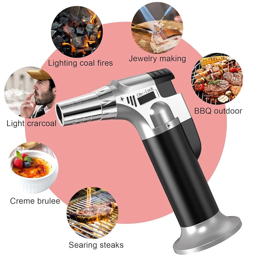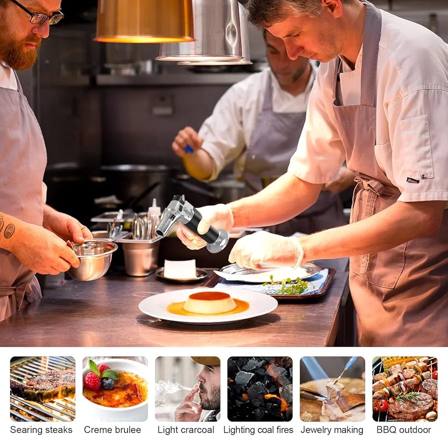 Uso múltiple: La antorcha de cocina es accesorios ideales para uso doméstico y senderismo de camping, es ideal para cocinar al vacío, asar carne, hornear, encender un fuego, puros, dabs, parrillas de barbacoa, y para trabajos de manualidades y artistas como resina de arte.