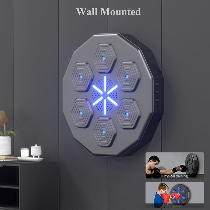 Hay tres opciones de instalación for la máquina de boxeo musical: perforación con tornillos / velcro / pegado fuerte, muy fácil de instalar en la pared, tamaño de la máquina de boxeo: 15.7x15.7x3 pulgadas, peso: 3.7 libras
