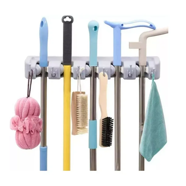 Mantén tus herramientas de limpieza en perfecto orden con nuestro Organizador de Trapeadores y Escobas. Diseñado para optimizar el espacio en áreas como la cocina, el cuarto de lavado o el garaje, este organizador cuenta con ranuras y ganchos que sujetan firmemente trapeadores, escobas, plumeros y más. Además, su instalación es rápida y sencilla, asegurando que tus artículos de limpieza estén siempre al alcance y en su lugar.