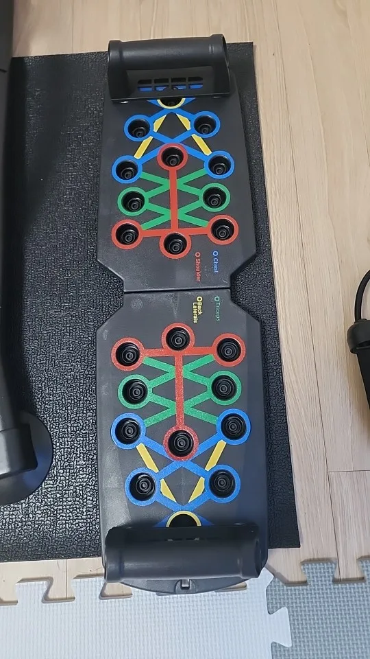 para este versátil dispositivo de fitness portátil para el hogar, hemos mantenido el entrenamiento profesional de flexiones, hemos añadido barras de fitness plegables y correas de muñeca/tobillo, rueda de rodillo abdominal y 4 bandas de resistencia para que puedas realizar más ejercicios. Ligero pero lo suficientemente estable. Puedes elegir la intensidad según tu capacidad.