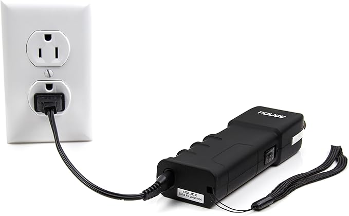 La linterna de pistola aturdidora simplemente se conecta a una toma de pared estándar para una recarga completa. No necesita pilas. Cable de carga incluido.